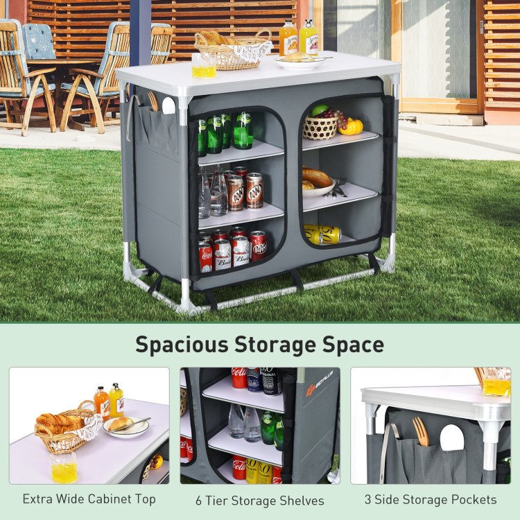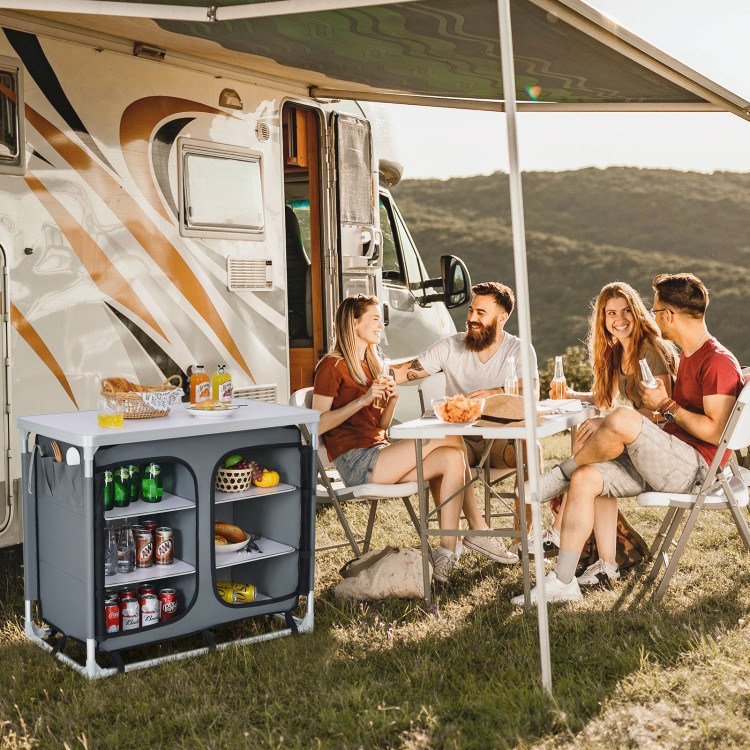 Portable Camping Kitchen Table with Storage Shelves