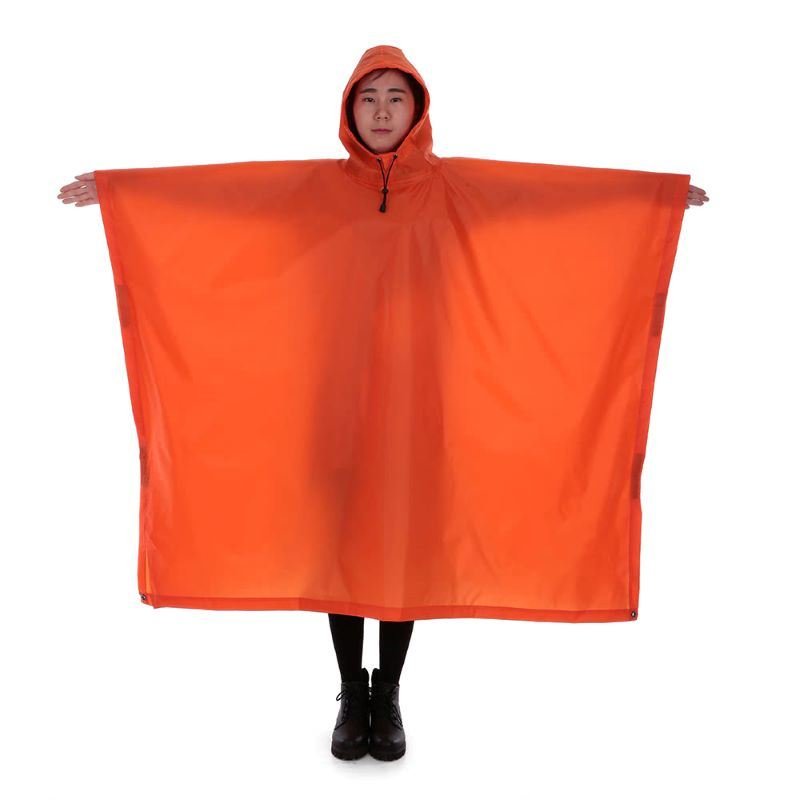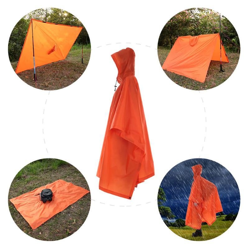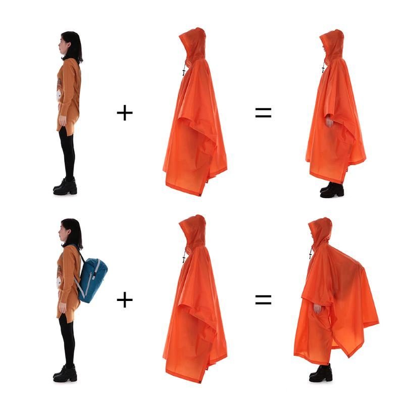 The hooded poncho can be used as a raincoat, camping mat, canopy shelter to block sunshine.