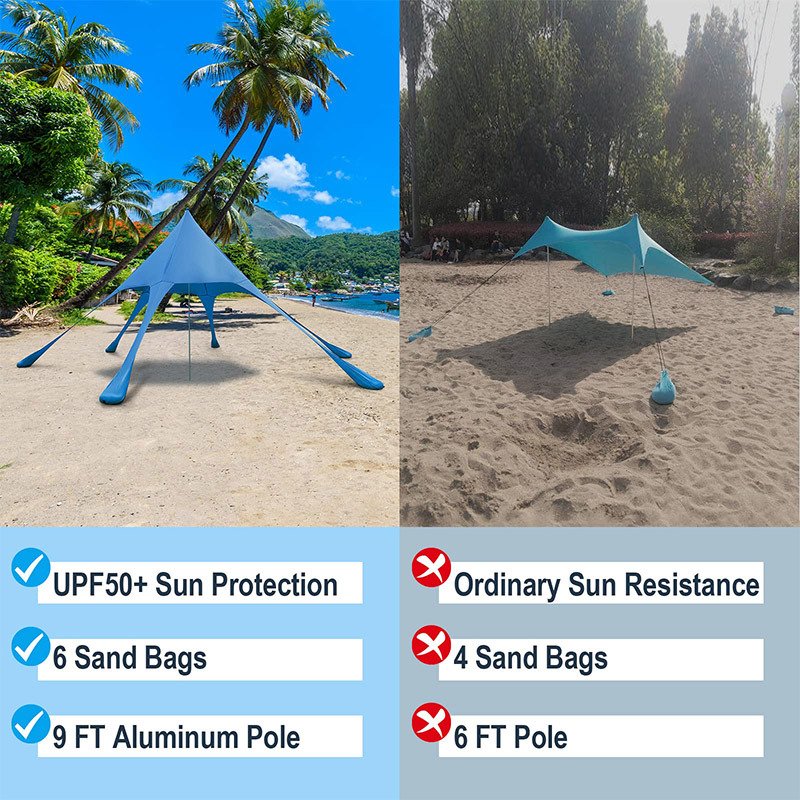 Elastic material enables you to freely move the sandbags and pole to adjust the shade.