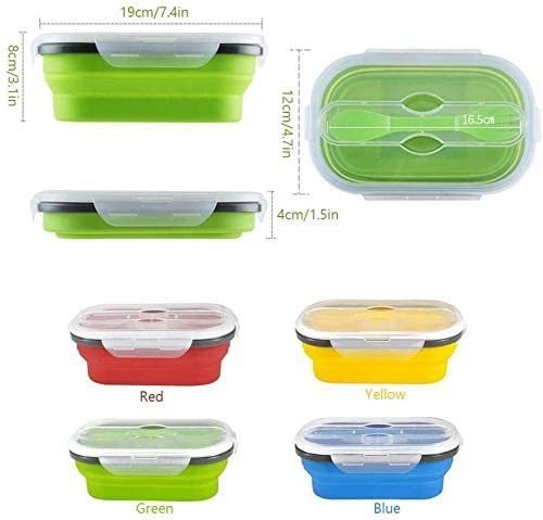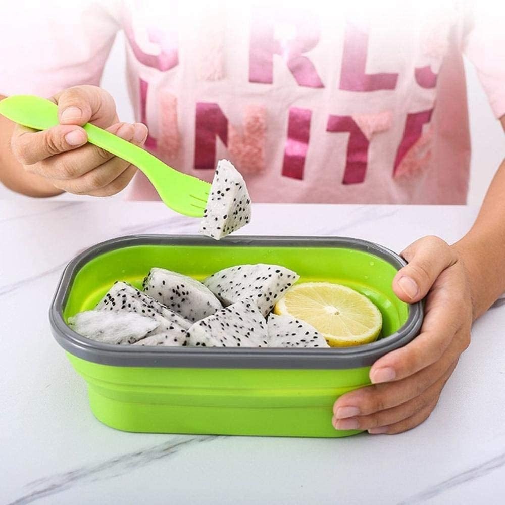 Lunch Box Collapsible Silicone Food Storage with Fork Spoon Expandable Eco Lunch Bento Box BPA-Free Dishwasher Freezer Microwave Safe