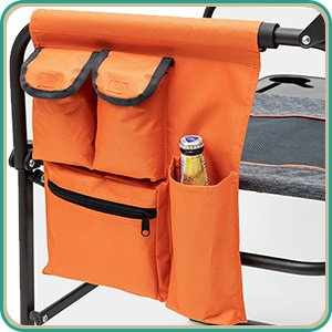 Convenient Storage: The flip-up side table and the integrated beverage & phone holders free your hands, and the double front multi-pocket attached on side providing ample storage to store your books, magazines, iPad, keys, wallets, keeping your belongings organized.Built to Last: The sturdy steel frame construction affords up to 300 LBS (136KG) weight capacity and the chair weights 13.4 LBS (6.1KG). The double-seam 600x300D Oxford Cloth & 200g mesh has great strength, durability, and breathability. You don't have to worry for the heavy-duty use, either to buy a new one in the near future.