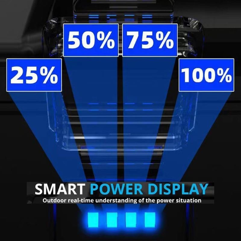 4 battery indicators, representing 100%-75%-50%-25% of power, keep track of the remaining power.