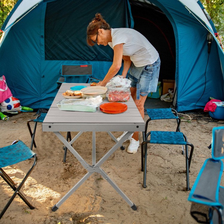 4-6 Person Portable Aluminum Camping Table with Carrying Bag