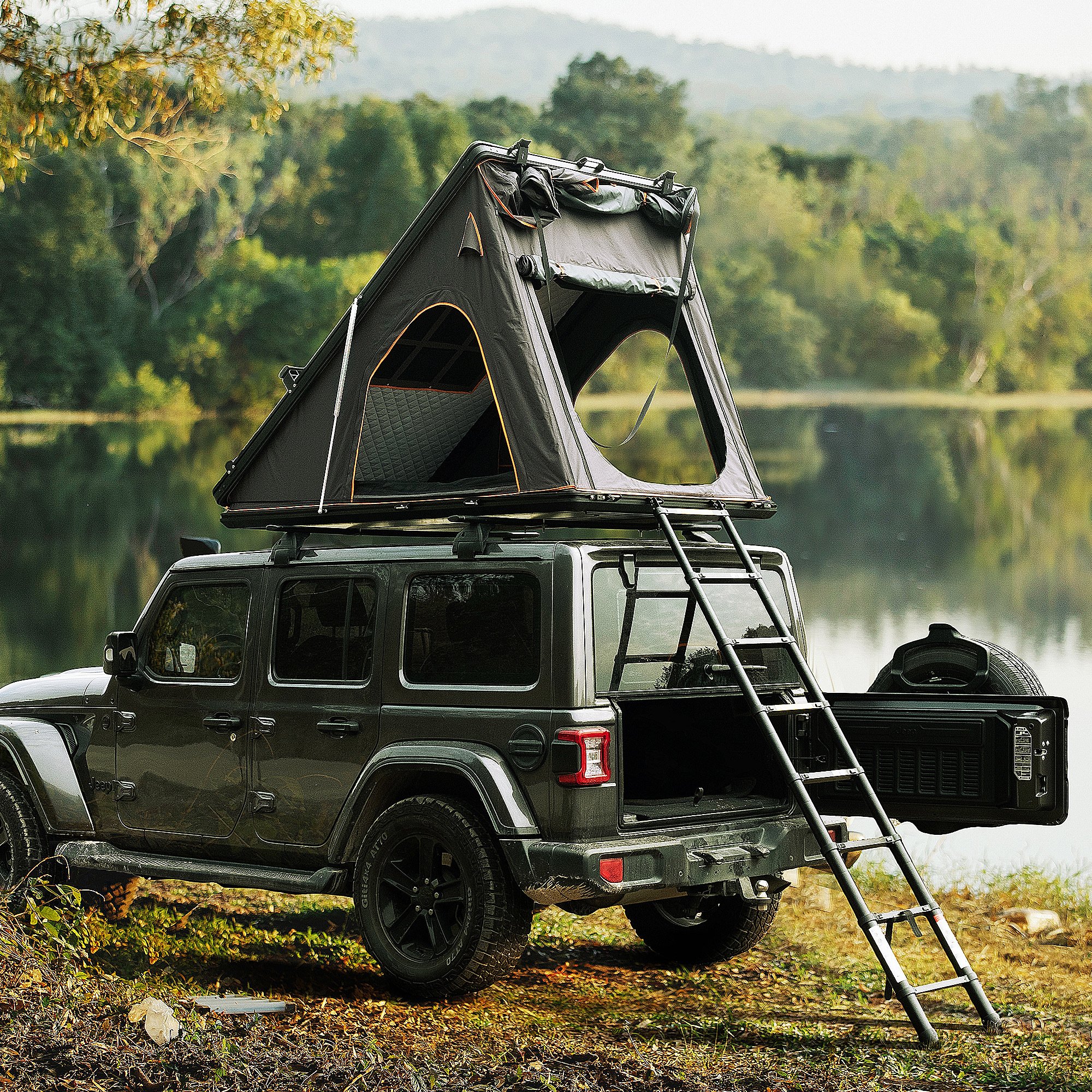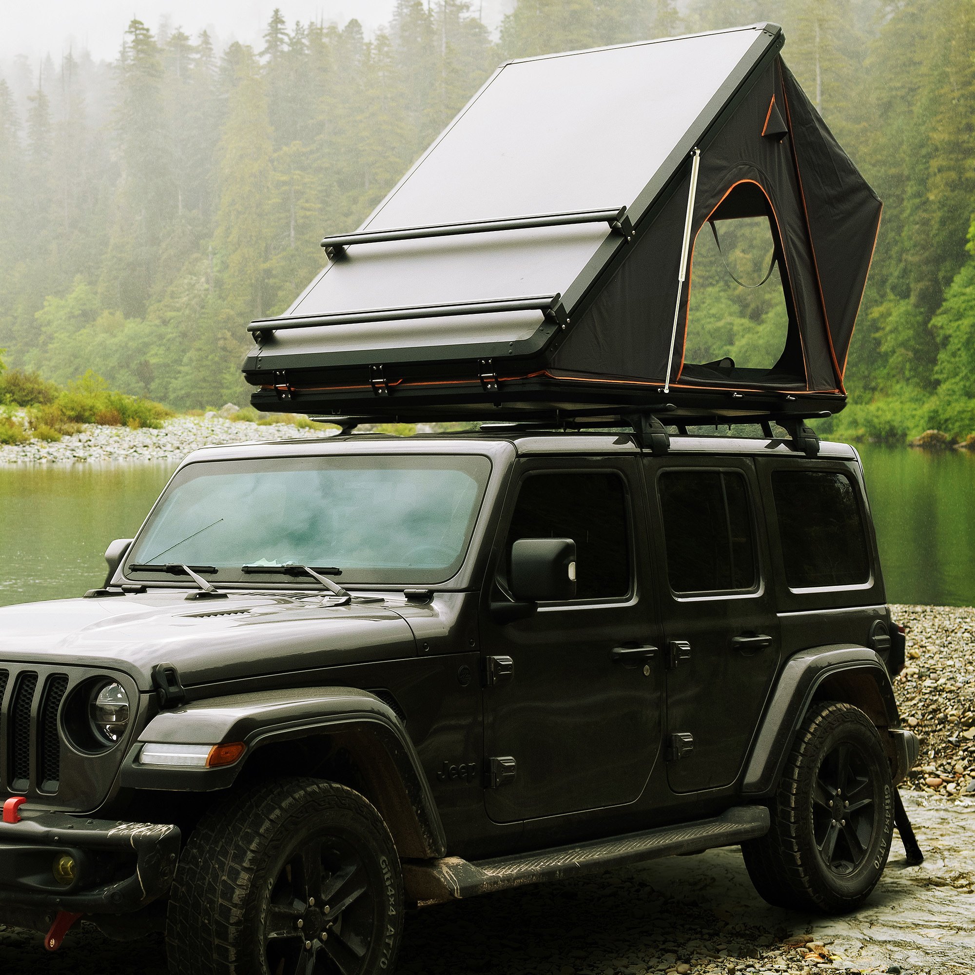 Trustmade Triangle Aluminium Black Hard Shell Grey Rooftop Tent with Roof Rack Scout Plus Series