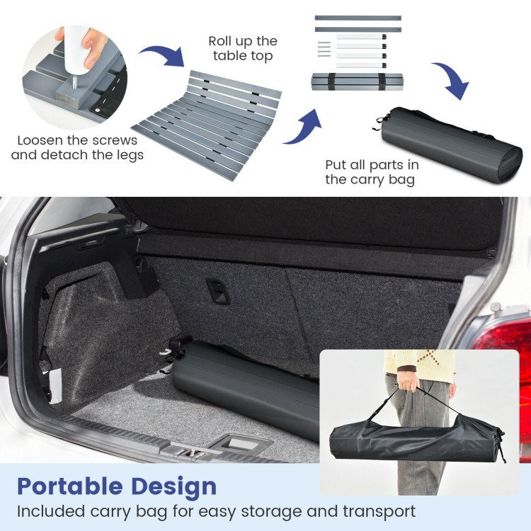 3.-Roll-up tabletop is easy to be folded to a compact size