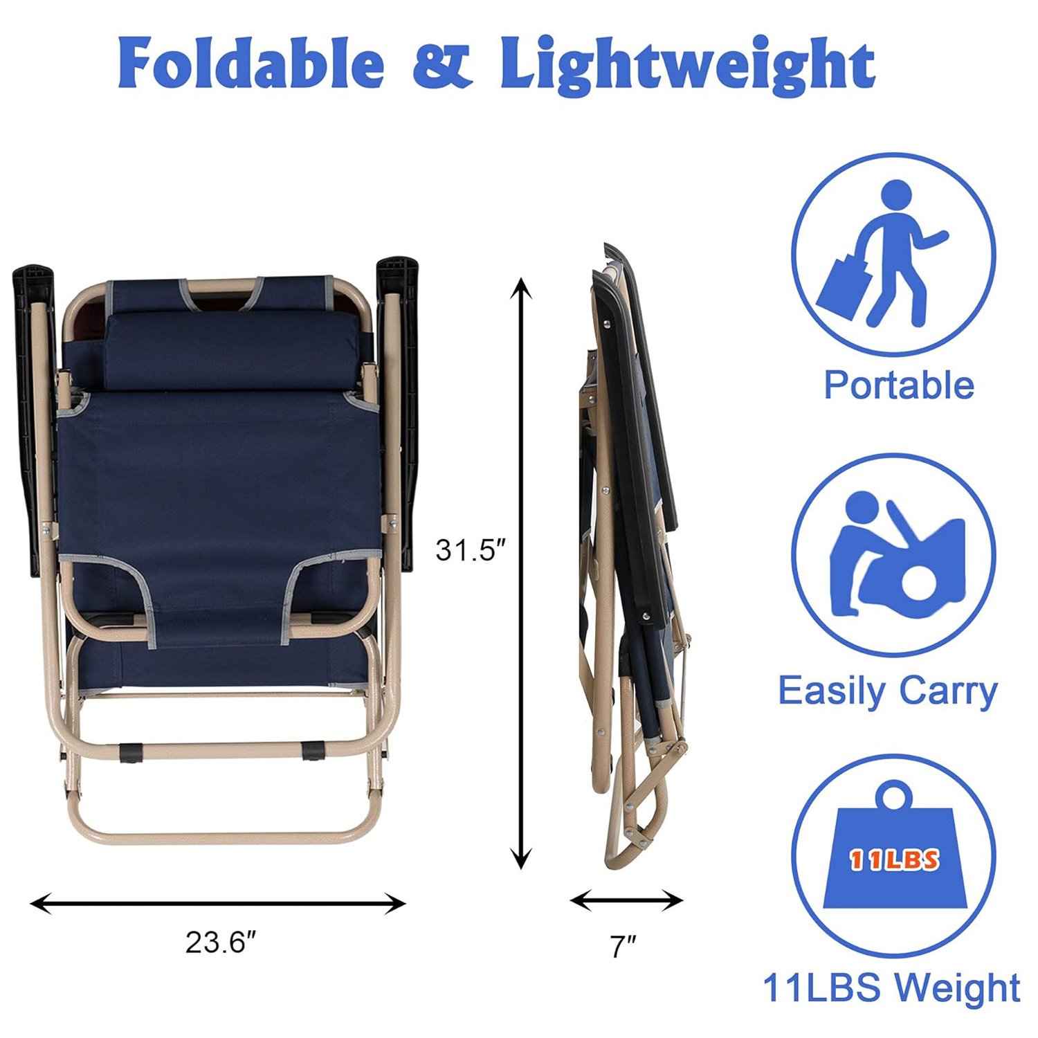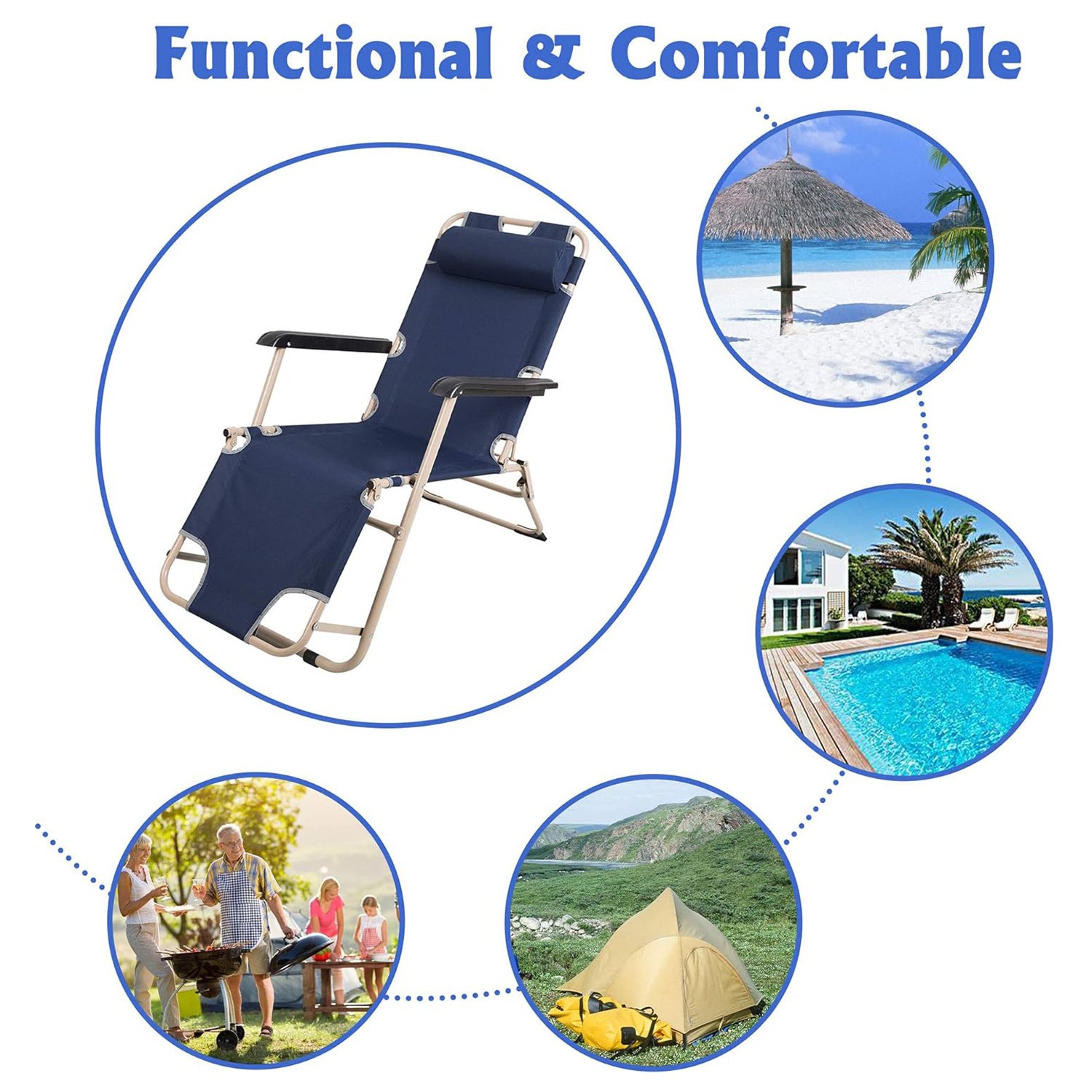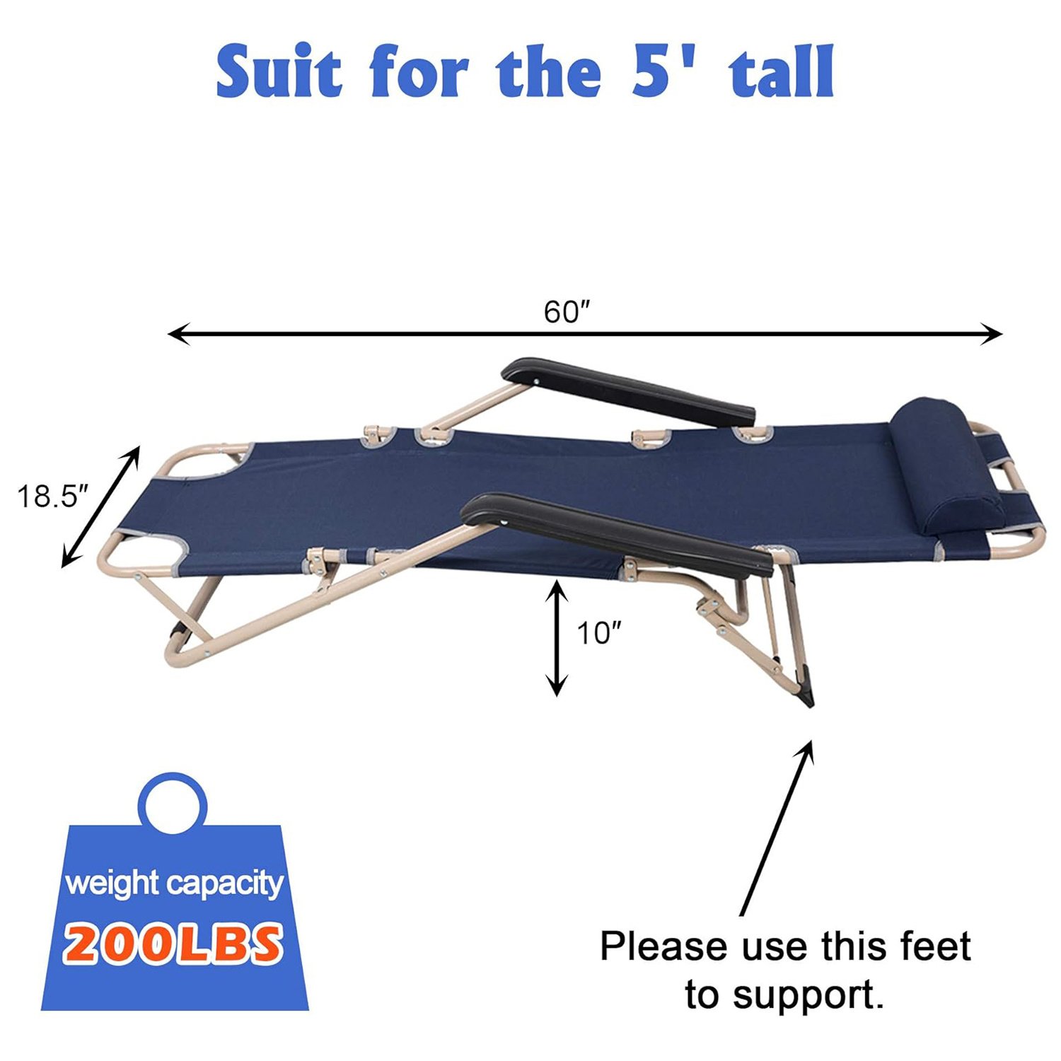 Portable Design: With its portable feature, the foldable recliner is suitable for various situations, such as beach, poolside, camping, picnic, and so on. Recommended for people under 6.1 ft.