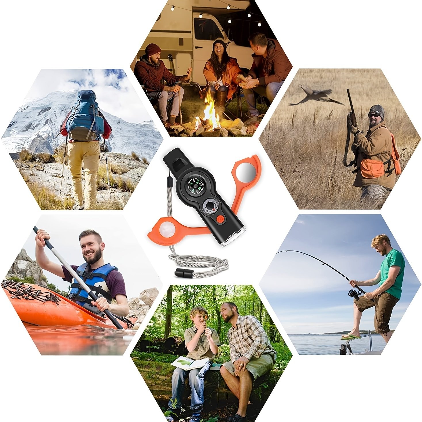 7-in-1 Multifunctional Outdoor Emergency Survival Whistle With Lanyard For Kayaking; Boating; Hiking; Camping; Climbing; Hunting; Fishing; Rescue Sign